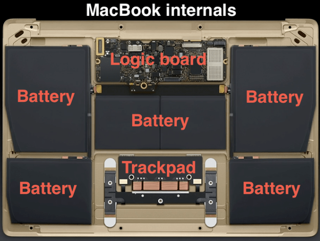 If you pulled the cover off of a new MacBook (pictured above), you’d quickly see a reality of modern day computer design. Computer processing power continues to get faster and smaller (this is Moore’s Law) while battery technology is not changing very quickly.